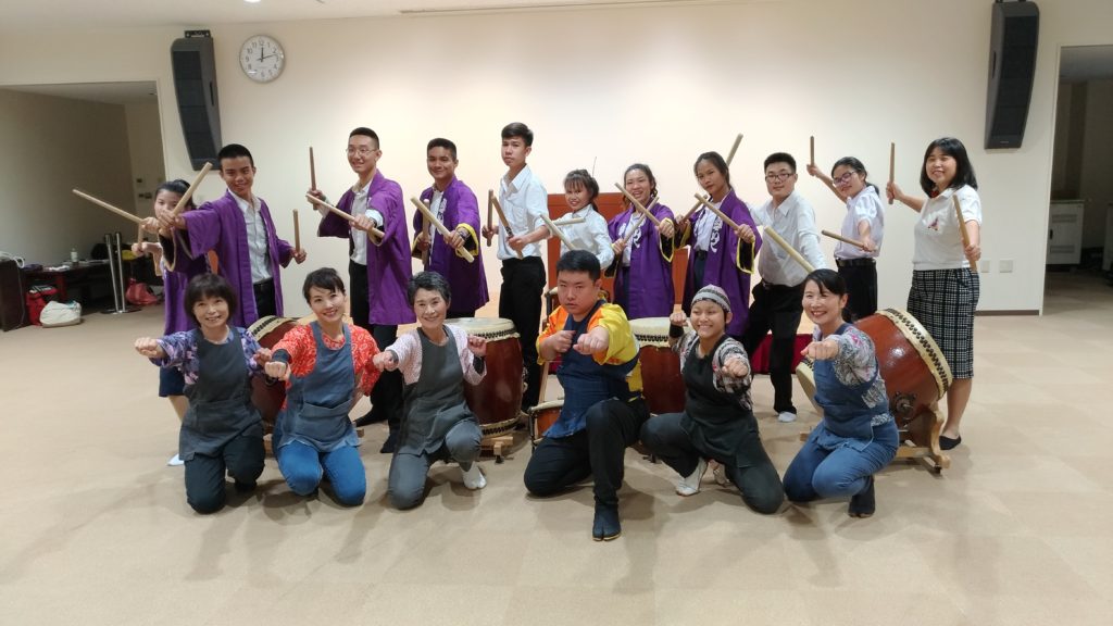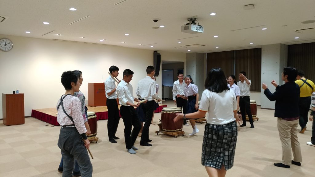 今日は、以前氣楽で一緒に太鼓を叩いていた橋野さんからの依頼で、名大付属高校にてタイの留学生さん10名と和太鼓交流会でした。(^o^)ノ イエー!